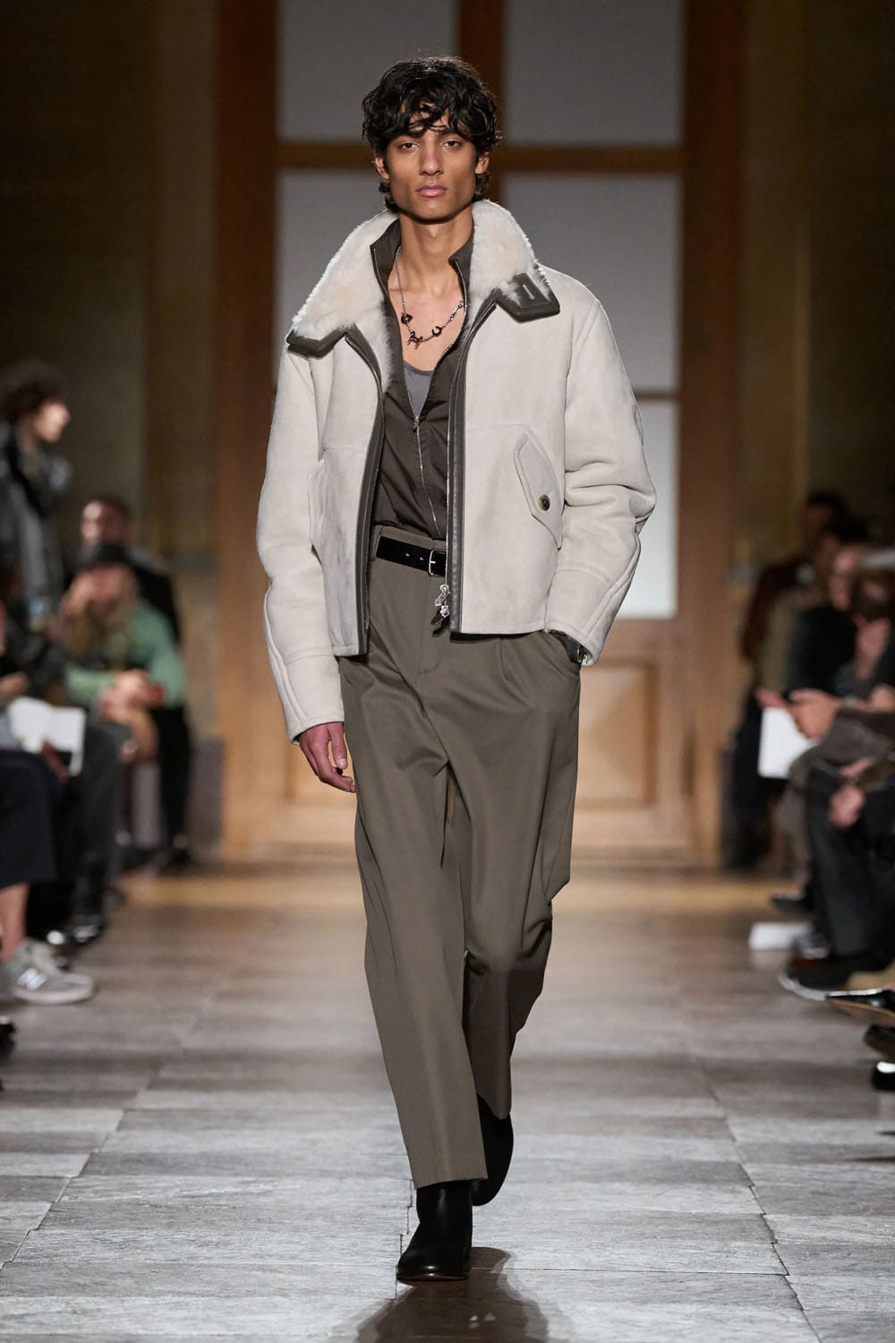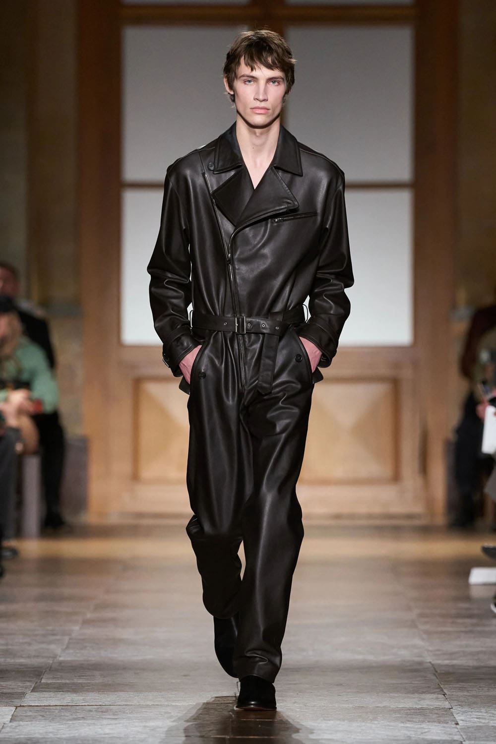 Многие из этих произведений... runway исходило из прошлого самого дома —issued, не переработанный. Кожаный комбинезон с байкерским воротником из коллекции осень 1991 года. Блузон из овчины 2004 года. Кожаный костюм в тонкую полоску 2003 года. Это были не ностальгические отсылки — это были доказательства. Как выразился Нишанян, «просто чтобы доказать, насколько это долговечно». На рынке, перенасыщенном сезонностью и одноразовыми трендами, Hermès осмелился показать, что будущее моды может быть удивительно похоже на прошлое.
